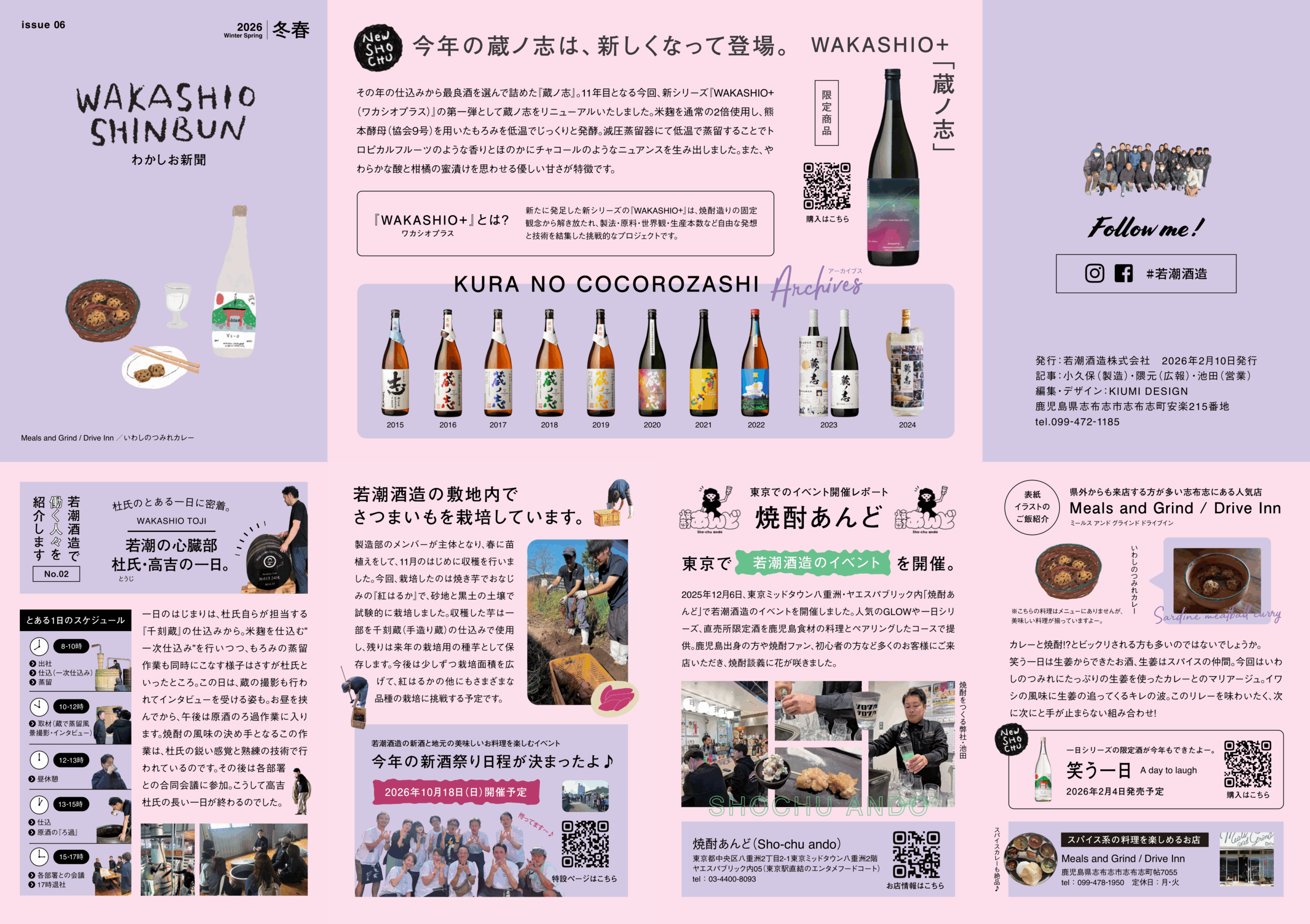 そのほか、志布志の人気店「Meals and Grind / Drive Inn」さんとのペアリング企画や、東京で開催したイベントのレポート、蔵でのさつまいも栽培の取り組みなども掲載しています。